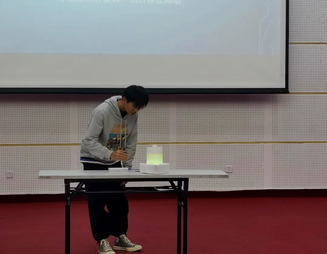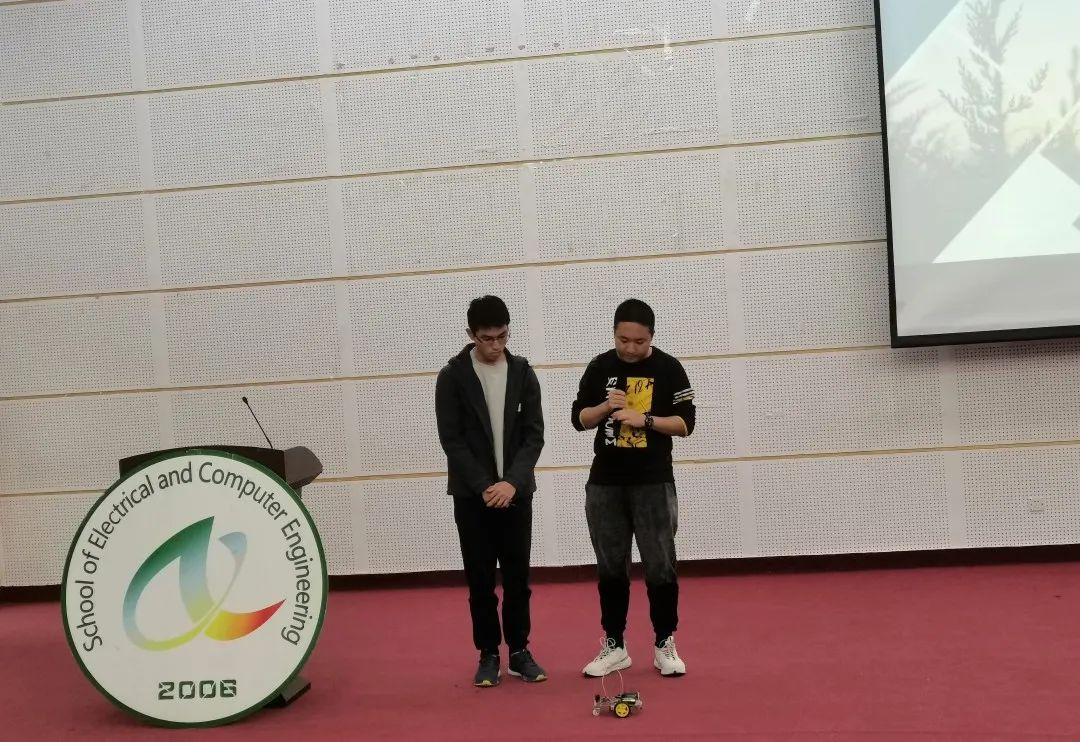 在各个小组上台对作品进行展示后,评委老师陈海山老师进行总结发言:“这次大赛的作品有传统的《循迹避障小车》,也有新颖的纯手势控制的《创意台灯》。大部分选手都是大一的,作品虽简单,但达到这一地步实属不易,后生可畏,期待同学更积极地了解深层的科技设计,期待有更多创意的作品出现,也期待更多的同学参与其中。”