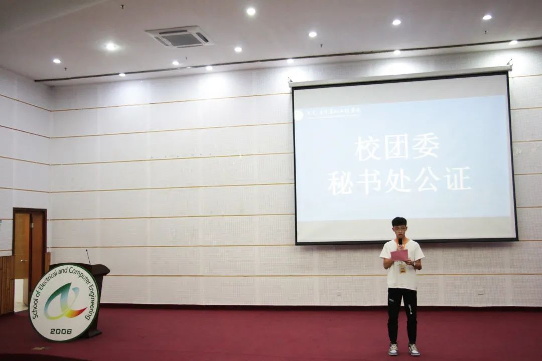 校团委秘书处代表为本次决赛进行公证致辞,表明本次比赛公平、公正,赛果有效。