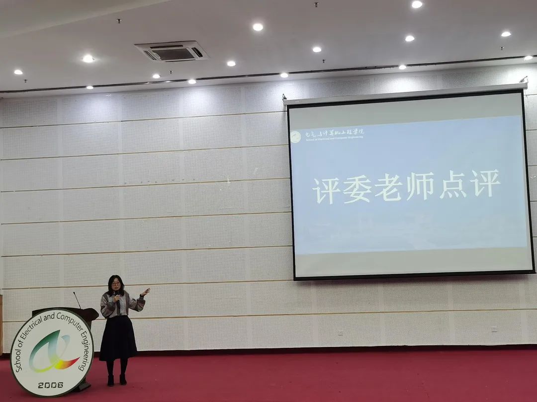 苑俊英老师针对本次决赛进行总结发言,活动至今已经举办了十二届,我们一直秉承“传承与创新”的理念,希望各组选手的作品不要局限于本次比赛,而是通过不断完善,将作品取得新突破,提升新高度。比赛的初衷是以赛促学,注重实践,参赛作品如能通过省赛,顺利进入国赛,便是很好的证明。本次比赛大家都很努力,现场表现也总体不错,也希望同学们在创作的过程能注重塑造团队理念,通过团队凝聚力和向心力,将科研进行到底,用创新勇往直前。