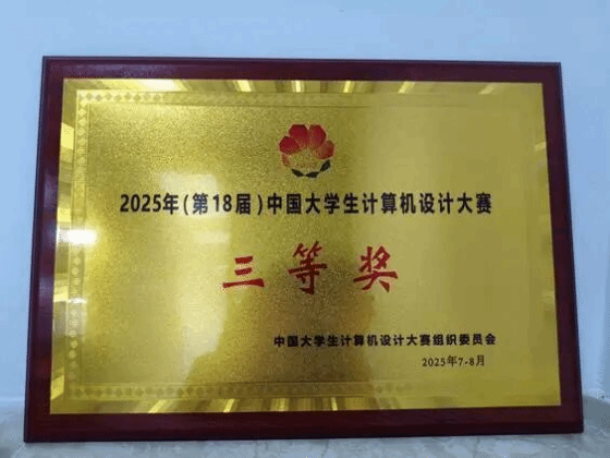 2025年7月27-31日,第18届中国大学生计算机设计大赛软件应用与开发全国总决赛在山东泰山学院圆满落下帷幕。本届赛事涵盖移动应用开发(非游戏类)、算法设计与应用、软件应用与开发专项赛、管理信息系统、Web应用与开发五大类别。经过层层选拔,全国31个省市458所高校的714项作品脱颖而出,进入到了全国总决赛,其中我院团队凭借优异表现,最终荣获“软件应用与开发-移动应用开发(非游戏类)”全国三等奖。