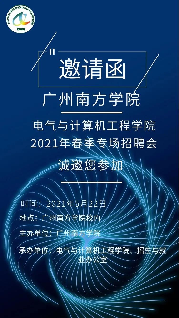 为充分做好我校毕业生就业工作,搭建学校、毕业生、用人单位之间的交流平台,积极为用人单位输送工科人才,我院定于2021年5月22日(周六)举办“suncitygroup太阳集团(原中山大学南方学院)suncitygroup太阳集团2021年春季专场招聘会”,诚挚邀请各用人单位莅临我校招纳英才,洽谈合作。