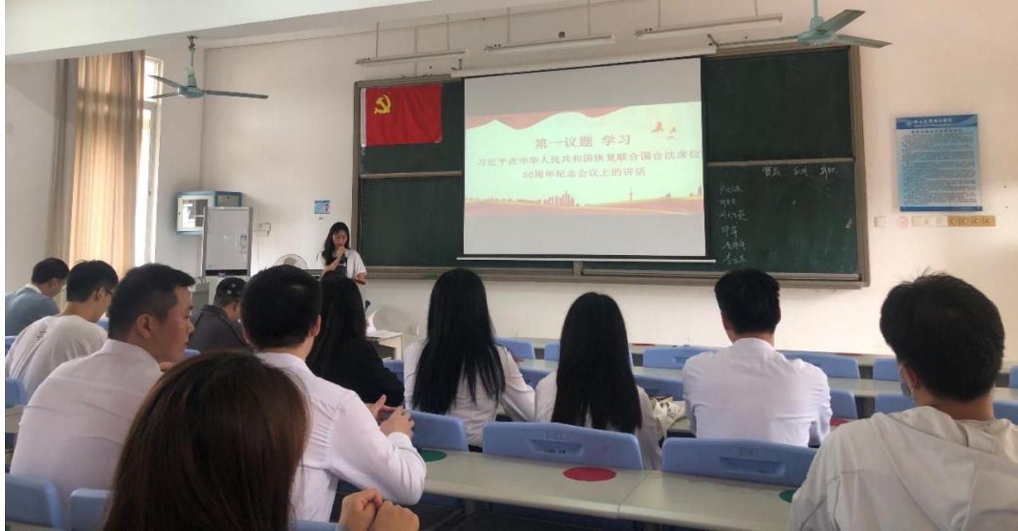 会议开始,陈金涛同志组织大家学习“第一议题”,本次学习的内容为《习近平在中华人民共和国恢复联合国合法席位50周年纪念会议上的讲话》。