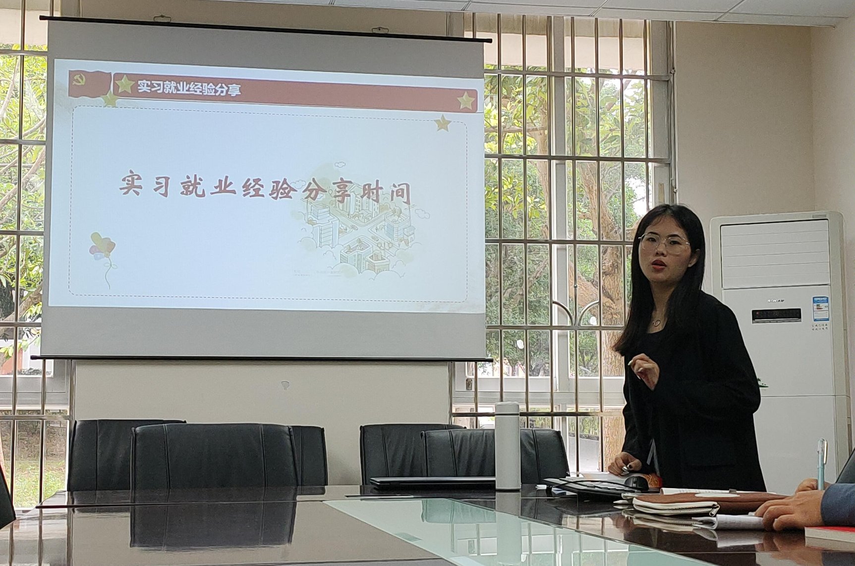 卢文珠同志则给大家分享的是求职、实习经验。她提到实习是为了积累经验,大家如果没打算继续考研深造就得提前为职业规划做准备。可以在大二结束的暑假就去找实习。当然一开始实习不要以追求高薪资为目的,应当结合自己职业规划情况选择匹配的工作,积累一定经验为毕业就业做准备。接着她给大家分享她的实习历程,分享结束后与积极分子们进行沟通交流了解大家的职业规划并耐心为大家解答疑惑。