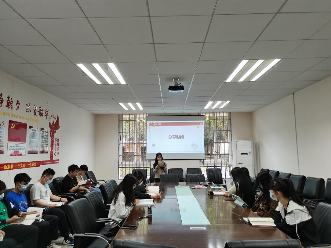 在三位党员推荐完书籍后,由14位积极分子开始分享阅读后的感想。积极分子孙瀚观赏《习近平谈治国理政(第三卷)》后有感,提及习总书记的各项决策不外乎“我将无我,不负人民”作为宗旨,写出了习总书记为创造幸福繁荣稳定昌盛的国家所做的努力;积极分子彭嘉怡观《论中国共产党历史》有感,即我们要认真学习党史,无论我们走得多远,都不要忘记来时路。勿忘初心,牢记使命!
