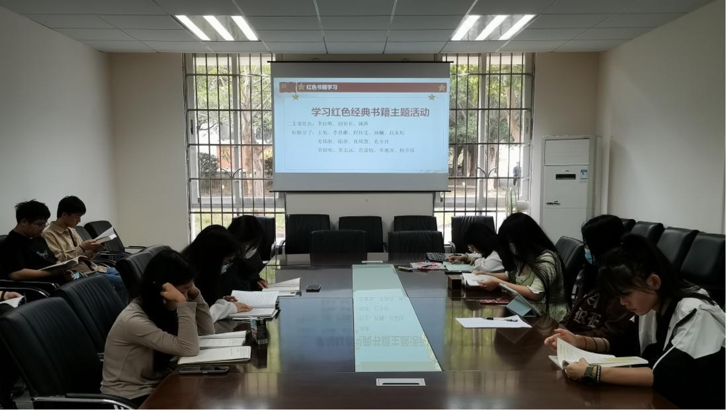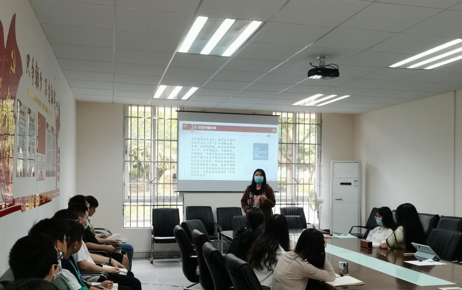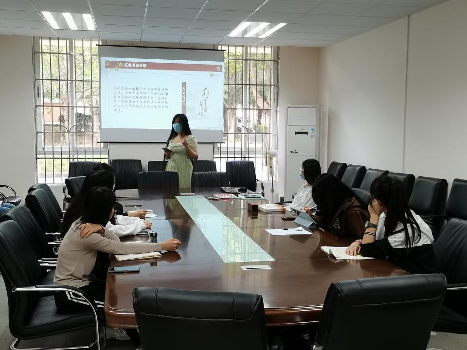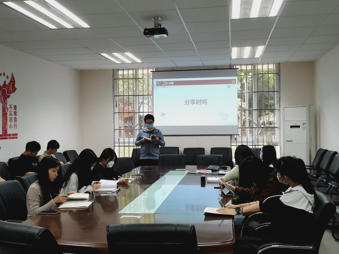 活动伊始,积极分子们在2-101会议室新开设的读书角,领取了党史学习教育必读的四本书目纸质版进行15分钟的阅读。阅读期间,积极分子们静静的投入到红色书籍的学习当中。15分钟结束后,由党员胡贝贝开始展示自己的推荐的红色阅读书籍。