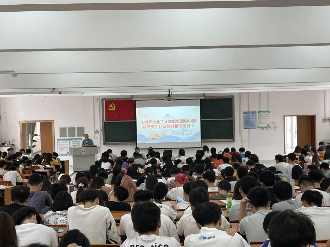 杨智教授满含深情为同学们讲述了共产党的发展史,结合时政热点,细致阐述回答中国共产党为什么能,以及中国共产党被历史所选择的原因。中国共产党之所以能取得新民主主义革命的胜利,是因为:其一,中国共产党拥有一群有着崇高理想信念的党员;其二,思想建党,党对军队的绝对领导,严密的组织领导体系;其三,中国共产党拥有良好的群众关系;其四,作风优良,严明纪律。