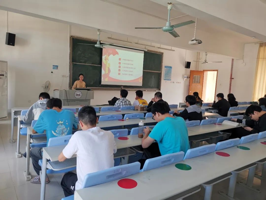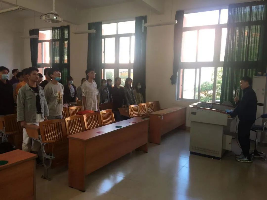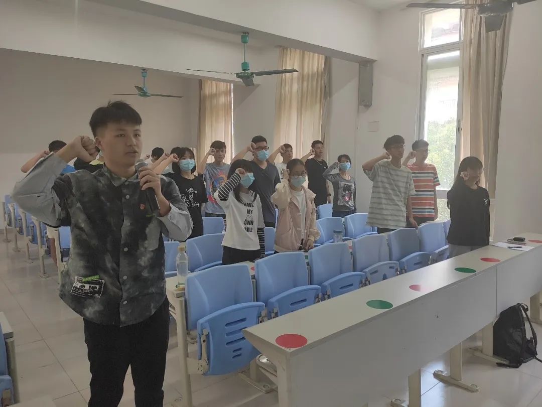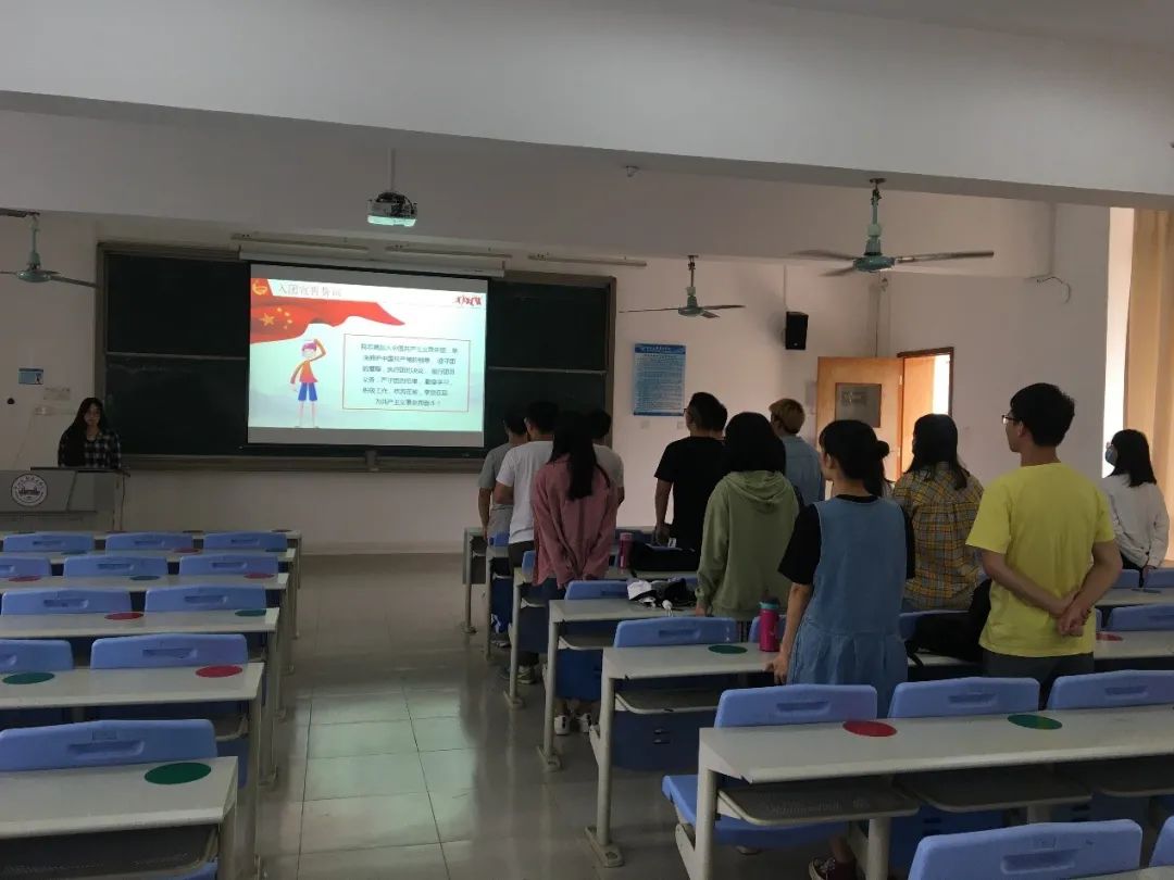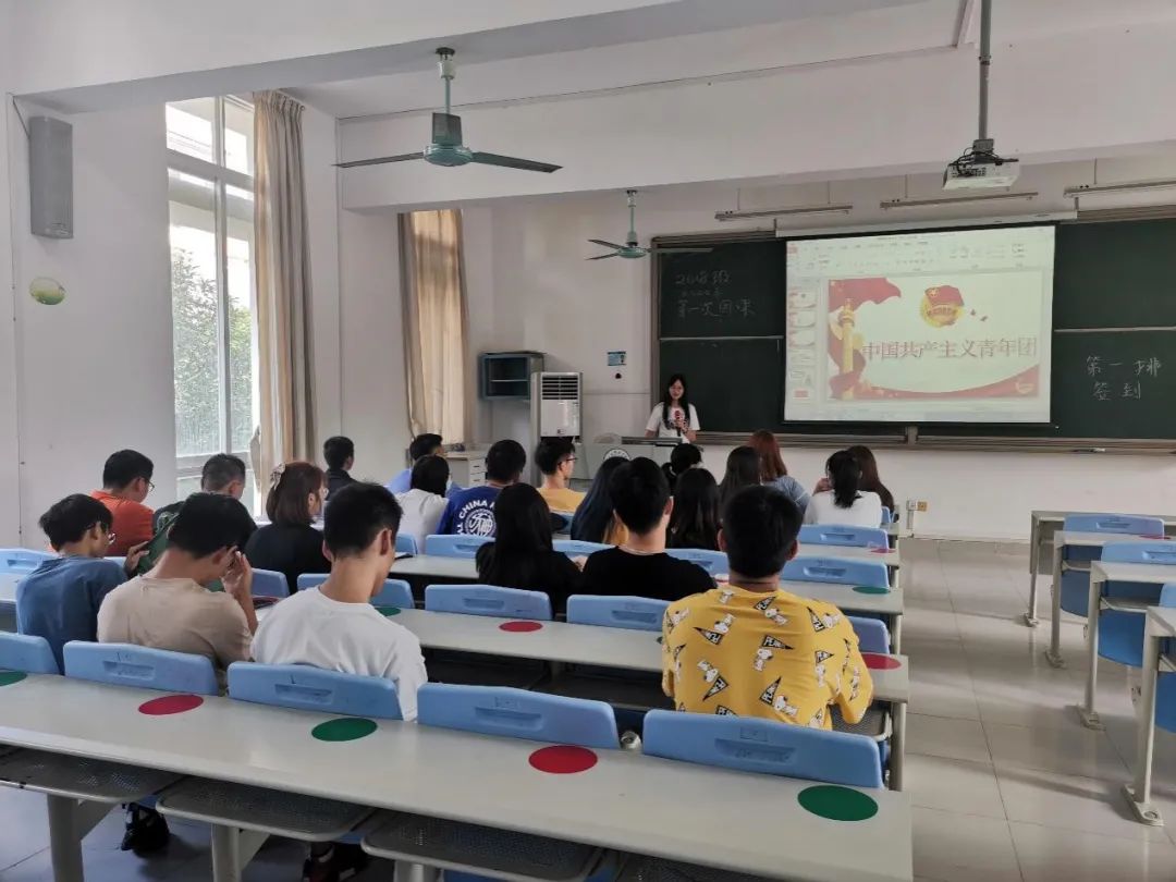 课堂一开始,党员黄祖杰同志让同学们回答:什么是共青团的性质、指导思想以及团旗和团徽的组成。课堂上黄祖杰也带领大家一起重温中国共青团团歌,并为大家讲解缴纳团费的流程,并让团员们介绍共青团的组织原则、团员的六项权利和六项义务。最后,黄祖杰同志带领团员们一起重温入团誓词,并希望大家不忘初心,牢记使命,为了祖国伟大复兴而奋斗。