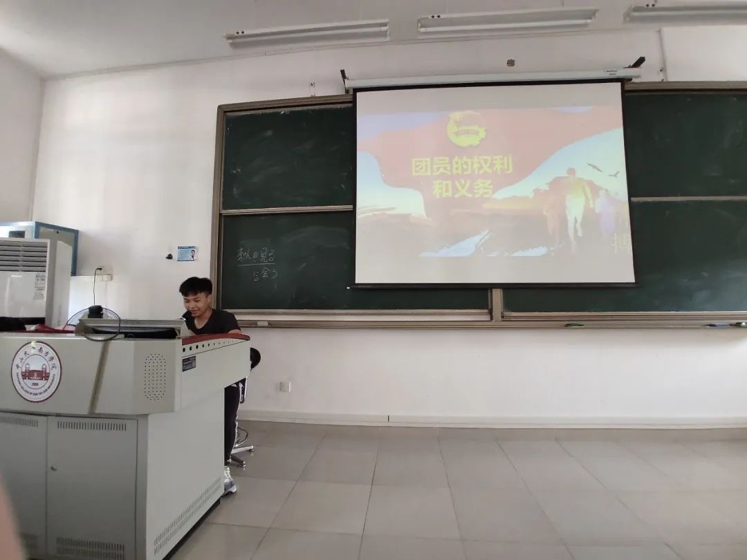 课程开始,王靖愉同志向大家介绍了共青团员的一些基本要求,讲解并重温共青团的基本知识,让同学们了解团徽和团员证的重要意义。