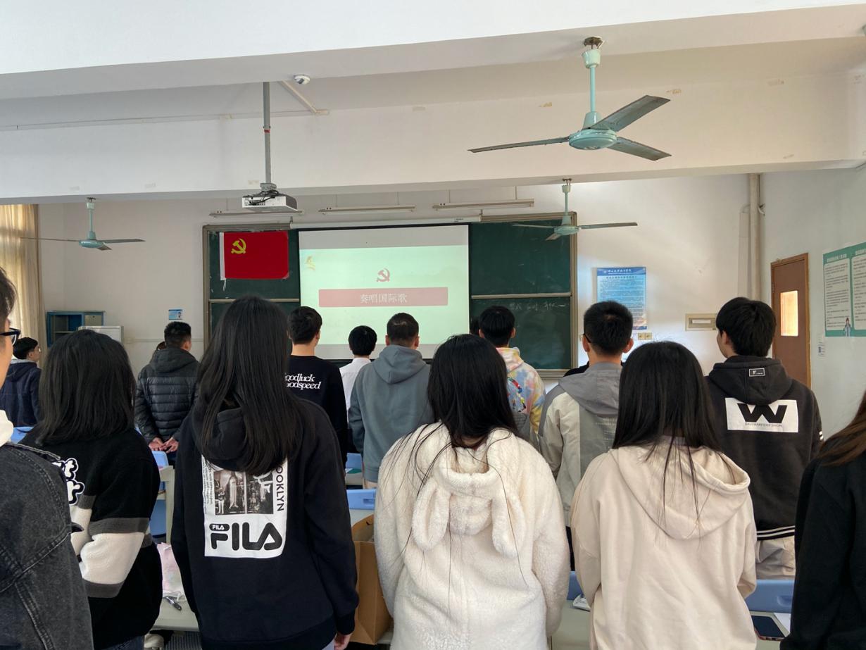 首先,全体起立,奏唱《国际歌》