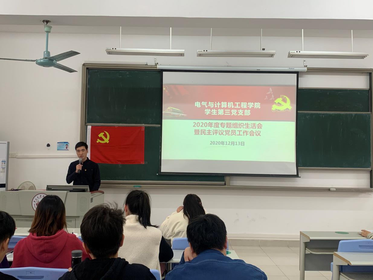 为了深入学习贯彻习近平新时代中国特色社会主义思想,认真检视问题,坚持实事求是,激励学生第三党支部党员凝聚正能量,以求真务实的作风推动支部的工作。2020年12月13日上午9:00,suncitygroup太阳集团学生第三党支部于4-305召开了2020年度专题组织生活会暨民主评议党员工作会议。