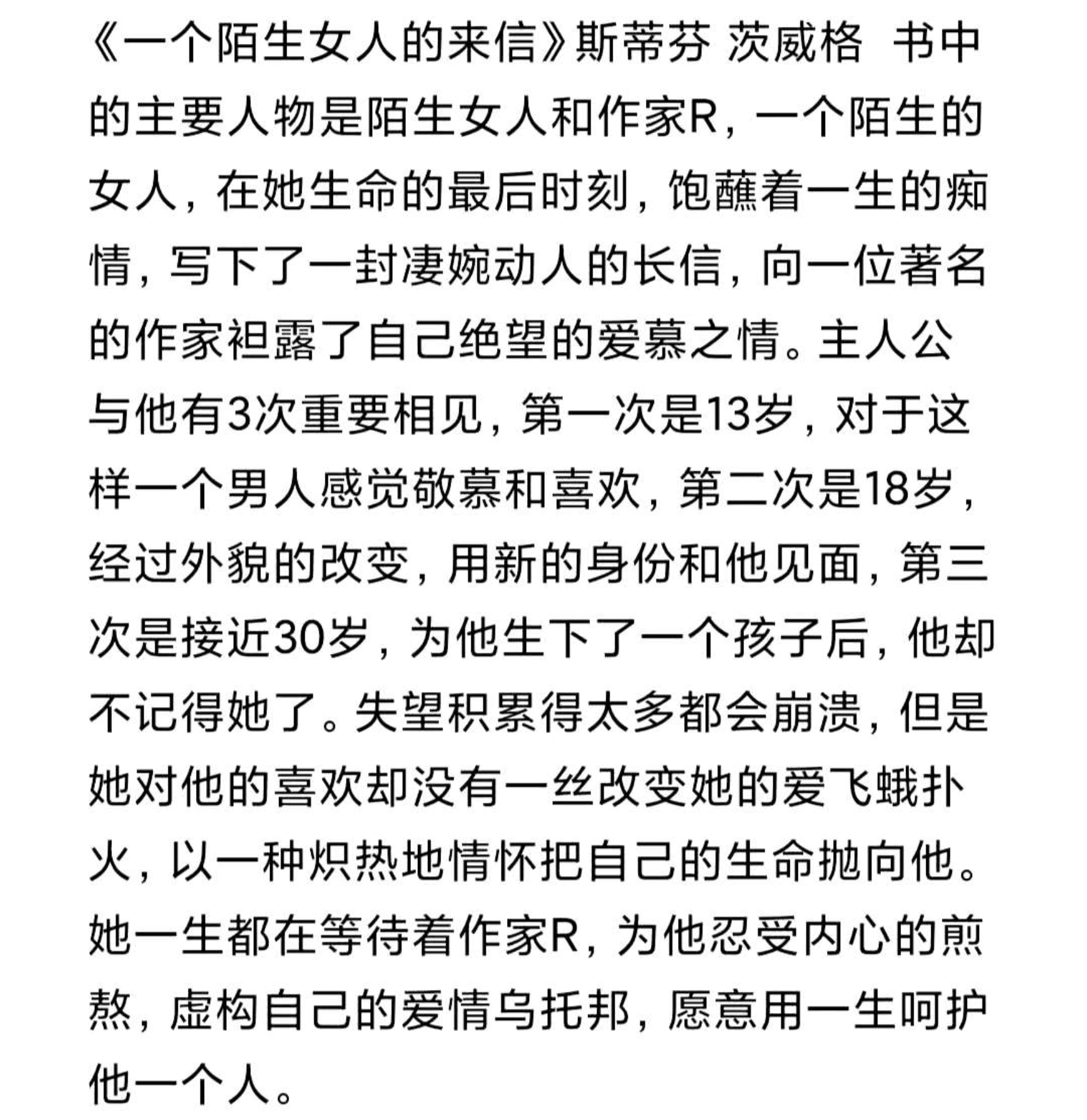 推荐作品:《一个陌生女人的来信》 作者:斯蒂芬·茨威格