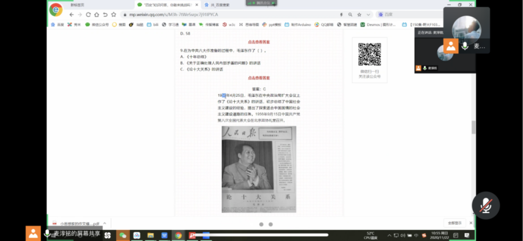 本次会议在“学四史、守初心、创未来”的背景下,展开了学习,麦淳铭同志线上分享有关“四史”和考研的政治时政题的知识问答,让全组一起参与答题和学习,常温党史、新中国史、改革开放史和社会主义发展史,是新时代青年的必修课,可以让我们在新中国发展的道路上,不忘初心、牢记使命、以史为鉴,明确努力前进的方向,增强实现中华民族伟大复兴中国梦的信心,开创属于我们的时代!