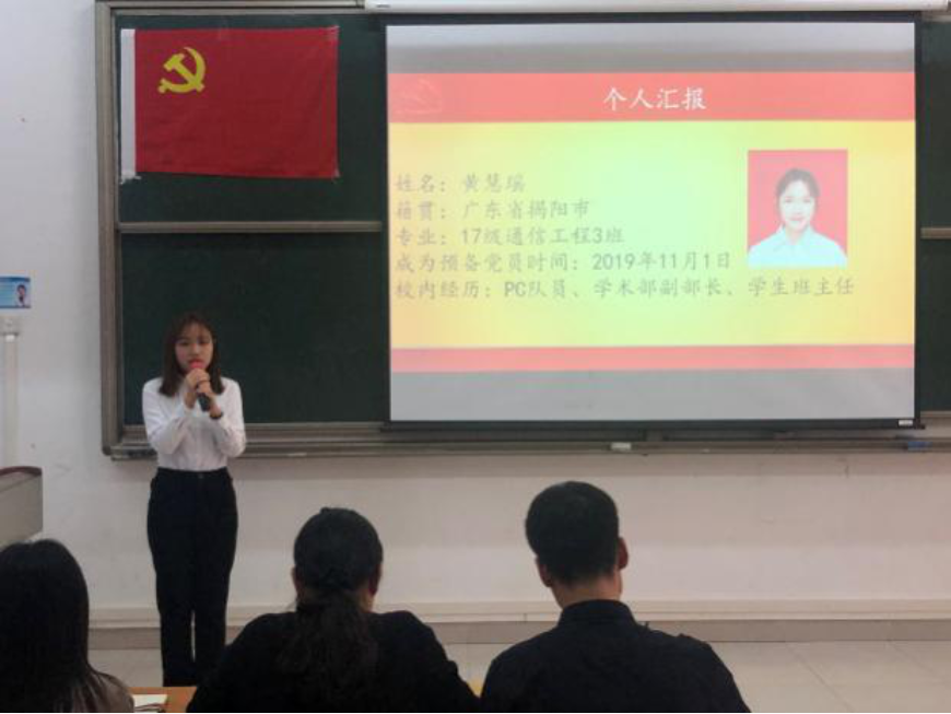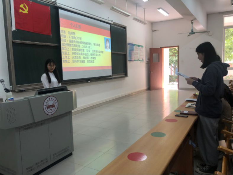 本项会议是针对2019年秋季预备党员向党支部提出书面转正申请的问题进行了讨论。2019年11月1日陈真真等9名同志经支部大会讨论表决,同意接收为预备党员,至今预备期已满一年。根据《中国共产党发展党员工作细则》第三十三条预备党员转正手续的相关规定,设定了预备党员转正讨论的流程。