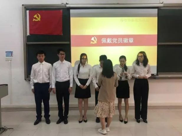 紧接着,由支部宣传委员苏燕漩同志为新接收的预备党员佩戴党员徽章、发放党章及党费证。