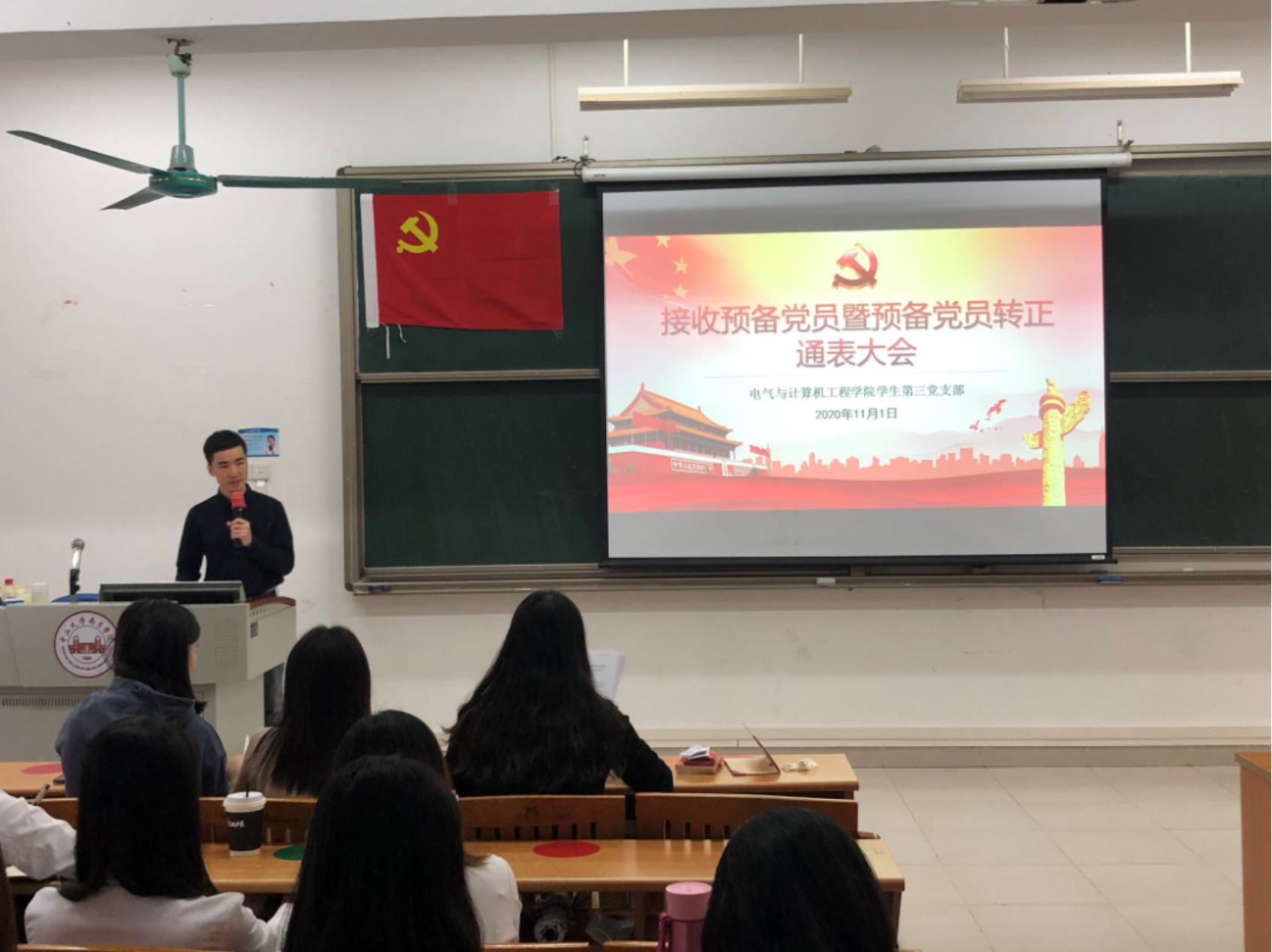 2020年11月1日8时,suncitygroup太阳集团学生第三党支部在1教104召开支部大会。会议由学生第三党支部书记孙大伟老师主持,支部组织委员万倩老师、宣传委员苏燕漩同志,支部其他党员和2020年秋季发展对象全体参会,会议共有五个环节。