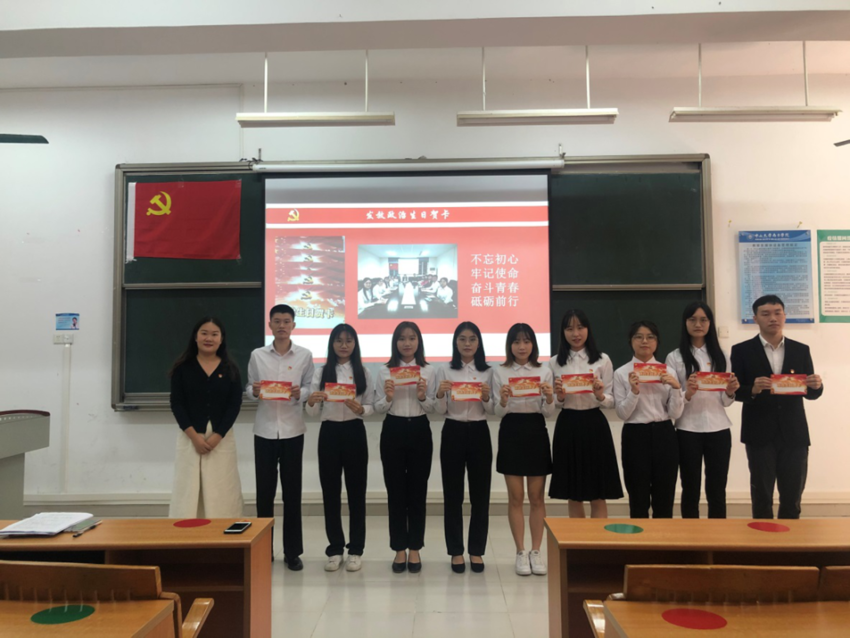 紧接着,万倩老师为过政治的同志们发放政治生日贺卡,并且由陈真真等9名同志带领,与会全体党员同志重温并宣读入党誓词,通过庄重的仪式感,与会同志不忘身份,不忘初心,不忘入党誓词,强化党性修养,更好的发挥先锋模范作用。