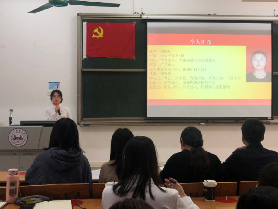 而后孙大伟老师主持“过政治生日、忆入党初心”主题活动,为2019秋季预备党员过政治生日,通过幻灯片展示了9名党员的精神面貌,孙老师送上寄语希望大家不忘初心、牢记使命、奋斗青春、砥砺前行。