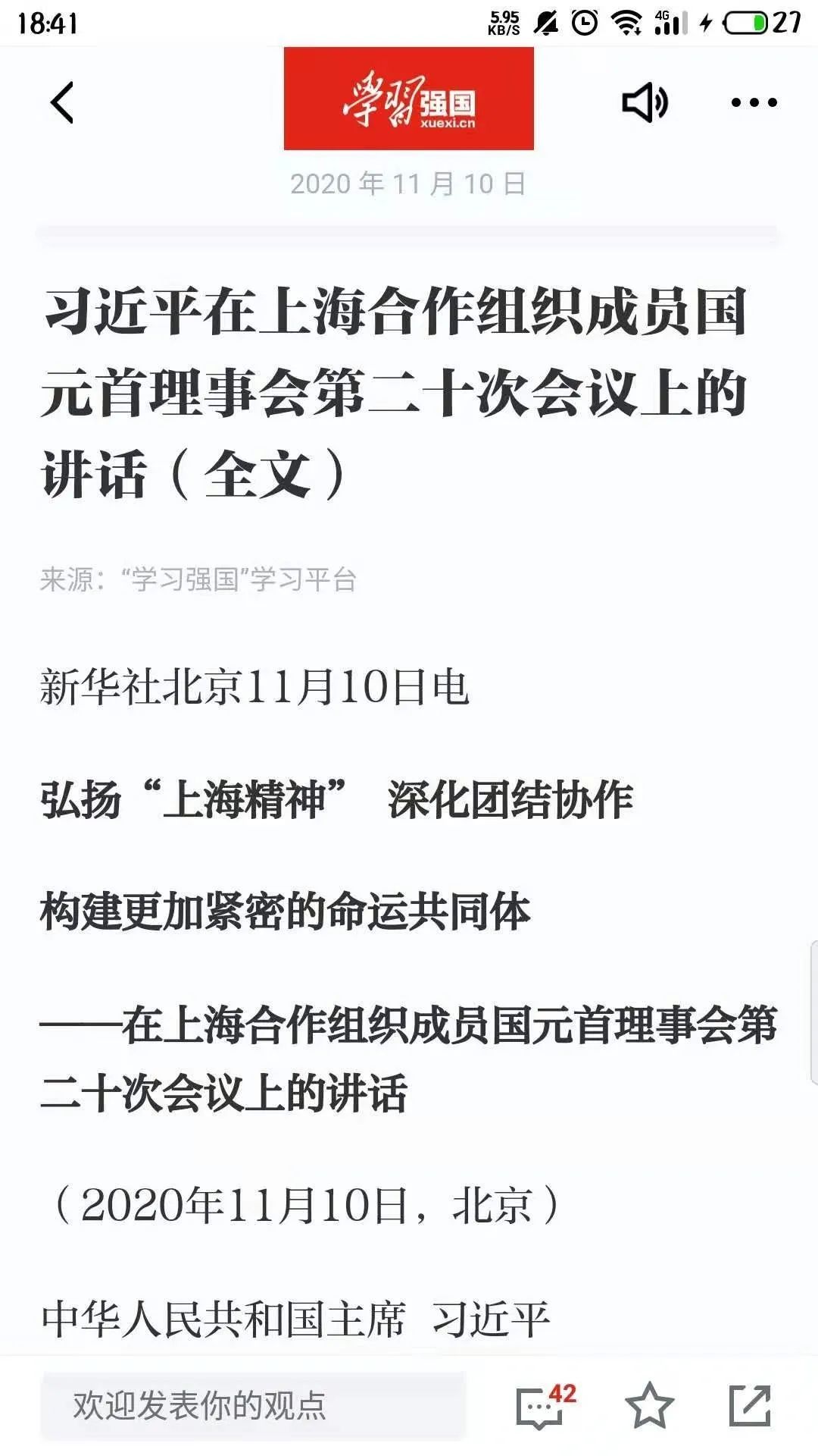 习近平在上海合作组织成员国元首理事会第二十次会议上的讲话