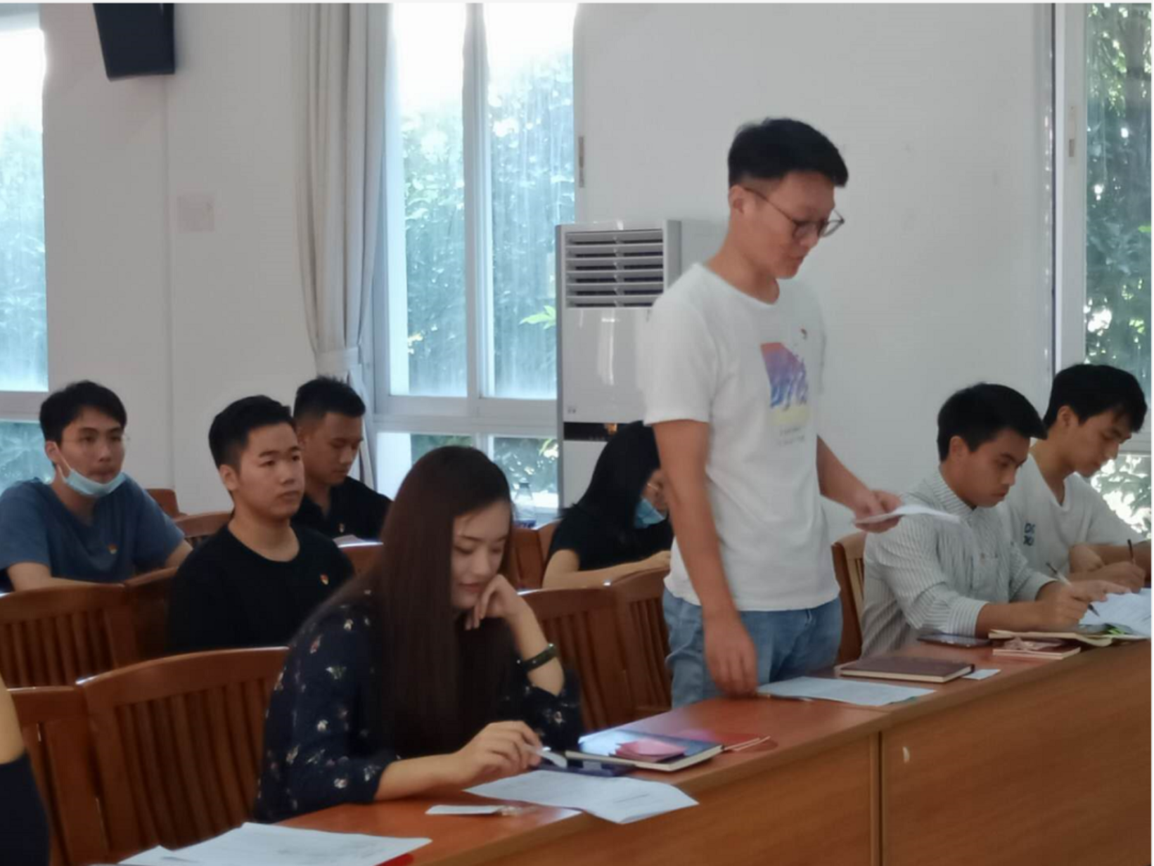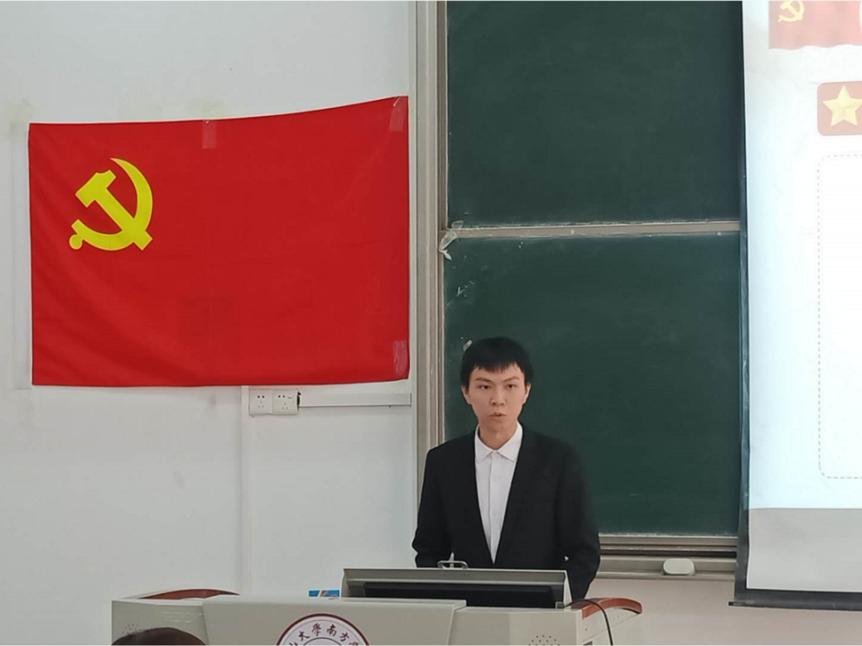 本次会议由学生第一党支部支部书记曲楠楠老师主持,学生第一党支部组织委员姜祥祥老师、宣传委员麦淳铭同志、其他党员和2020年秋季发展对象全体参加。
