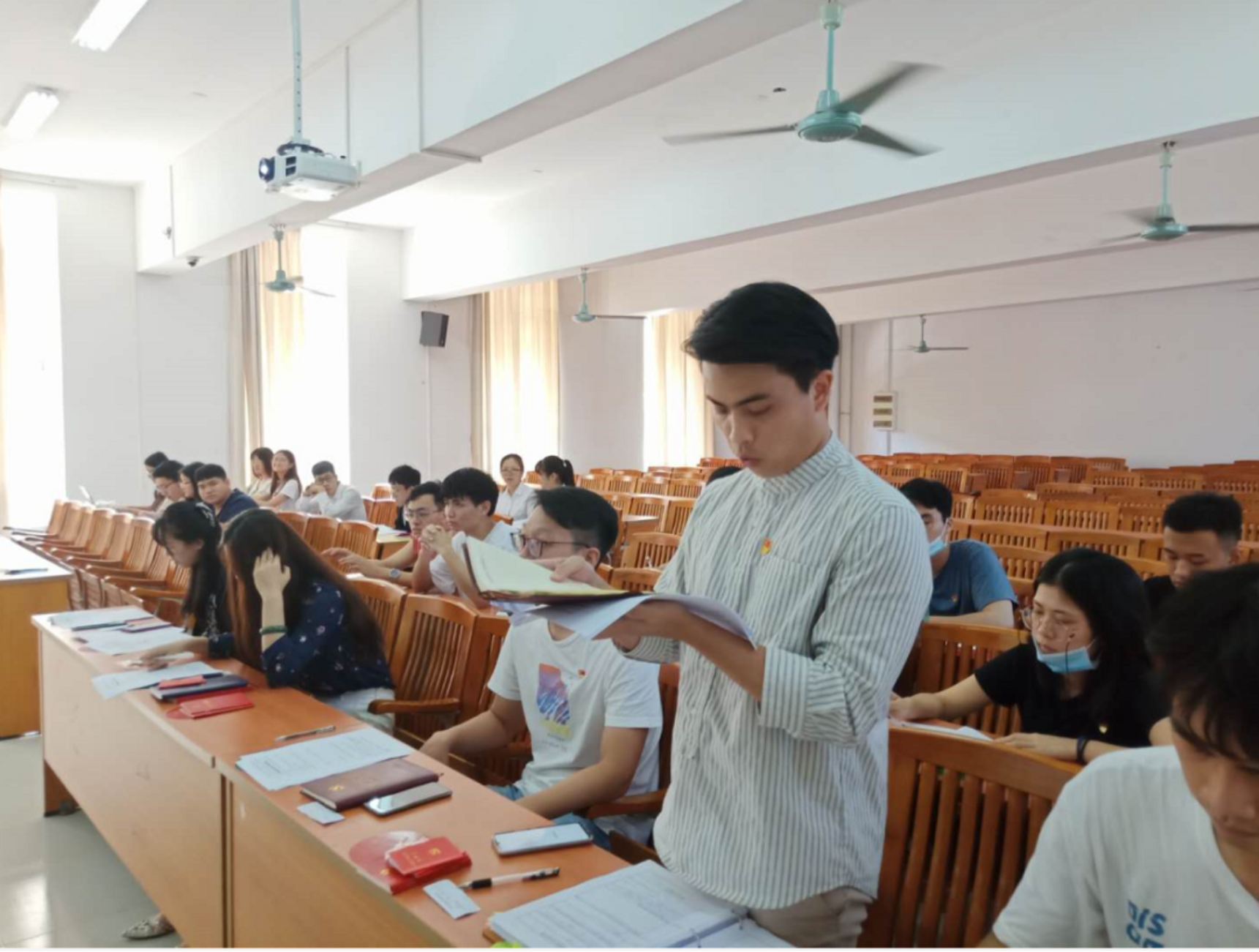 大会在奏唱《国际歌》歌声中拉开了帷幕。大会伊始,曲老师宣读了会议纪律,保证了大会的严肃性,并报告出席会议人数:学生第一党支部共有党员19人,其中正式党员5人,预备党员14人。出席会议的正式党员有5名,预备党员14名,因事因病请假0人,有故缺勤0人,无故缺勤0人。有表决权人数超过应到会有表决权人数的半数,符合规定,可以开会。