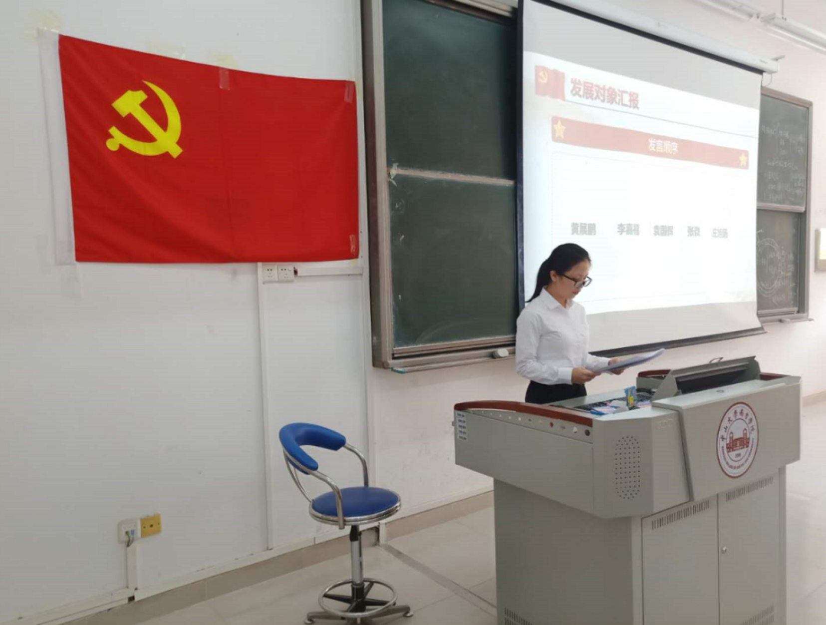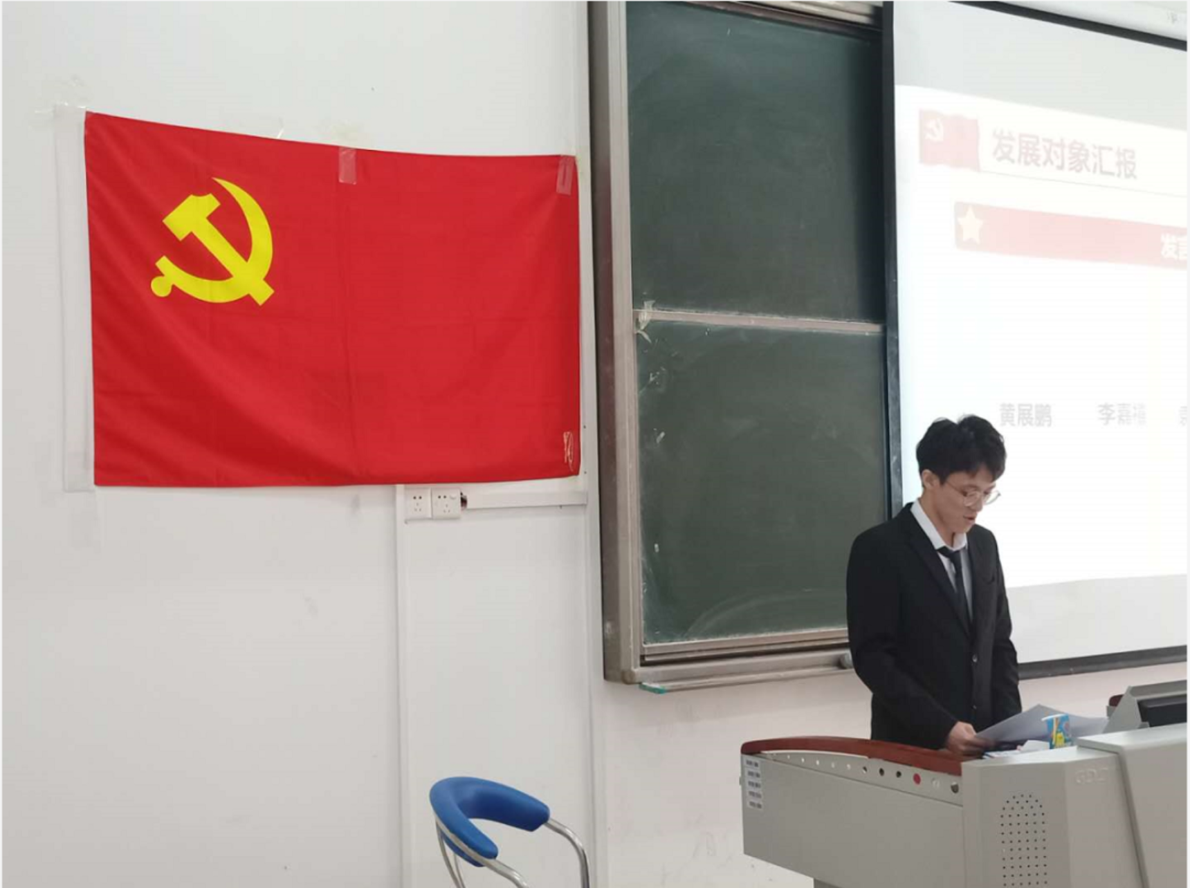 黄展鹏等5名同志的入党介绍人姜祥祥老师、刘丁嘉老师分别汇报了黄展鹏等5名同志在思想上、学习上、生活上、工作上的表现,并表示同意作为其入党介绍人介绍其入党。