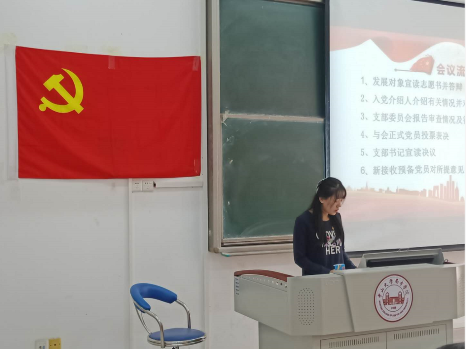 曲楠楠老师宣读接收2020年秋季预备党员的会议流程: