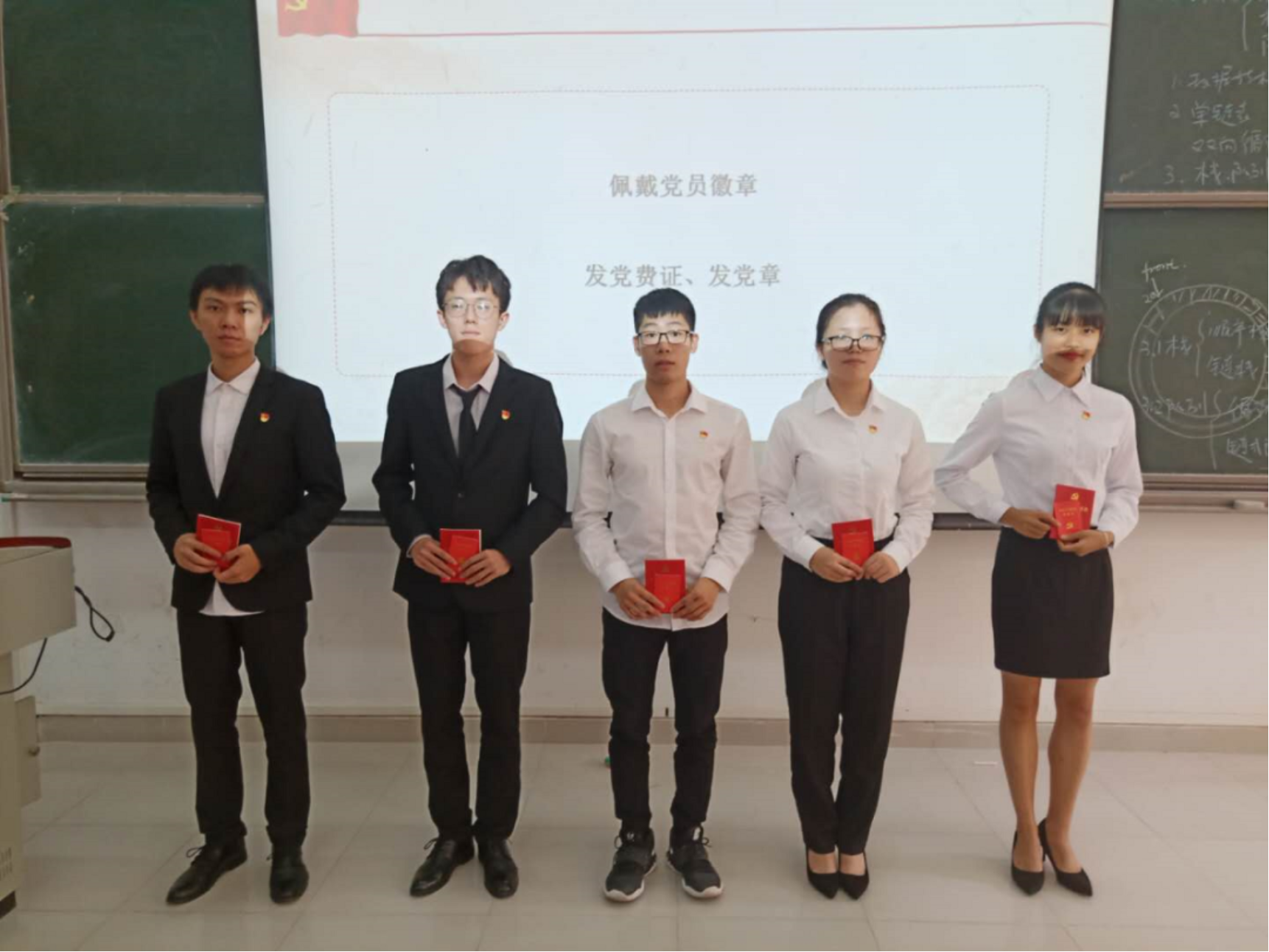 会上,黄展鹏等5名同志分别宣读了入党志愿书,汇报了自己对党的认识、入党动机和本人履历,表明了自己的态度。