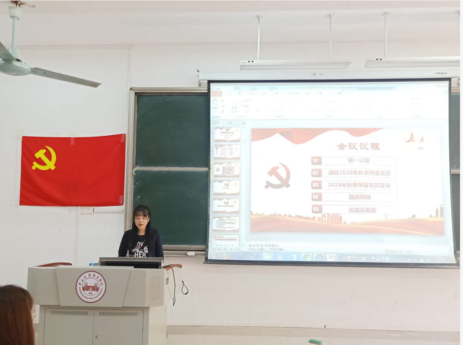 会议最后,学生第一党支部书记曲楠楠老师肯定预备党员在预备期内的优秀表现,但是需要加强党的理论知识的学习。最后,她提出要求:作为一个党员,需要牢记党员的身份,要明确作为一个党员的责任意识,牢记使命,发挥先锋模范作用,努力成为一名国家栋梁。