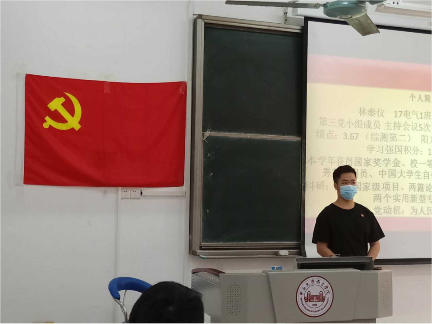 林秦仪同志从学习、科研、参加国家奖学金答辩三个方便分享交流。林秦仪同志向大家分享了国奖答辩时的气氛,并表示无论是在学校还是在社会都不要害怕遇到比自己优秀的人,机会是留给有准备的人,时刻保持一颗奋斗的心;在集体中保持一颗贡献之心,学会为自己所在的集体做贡献;不要低估自己的能力,做到两个“务必”——务必继续保持谦虚谨慎 不骄不躁的工作作风;务必继续保持艰苦奋斗。