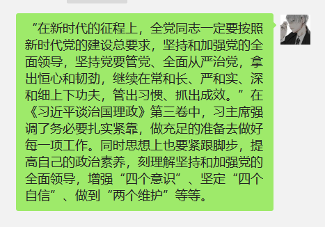 通过本次会议,我们不仅更加深入理解了习近平新时代中国特色社会主义思想,并认识到要多加强自己的政治素养和过硬的本领。梁启超曾说过“少年强,则国强;少年富,则国富;少年屹立世界,则国以屹立世界。”辛亥革命的精神将永远激励着我们当代年轻人奋勇直前。