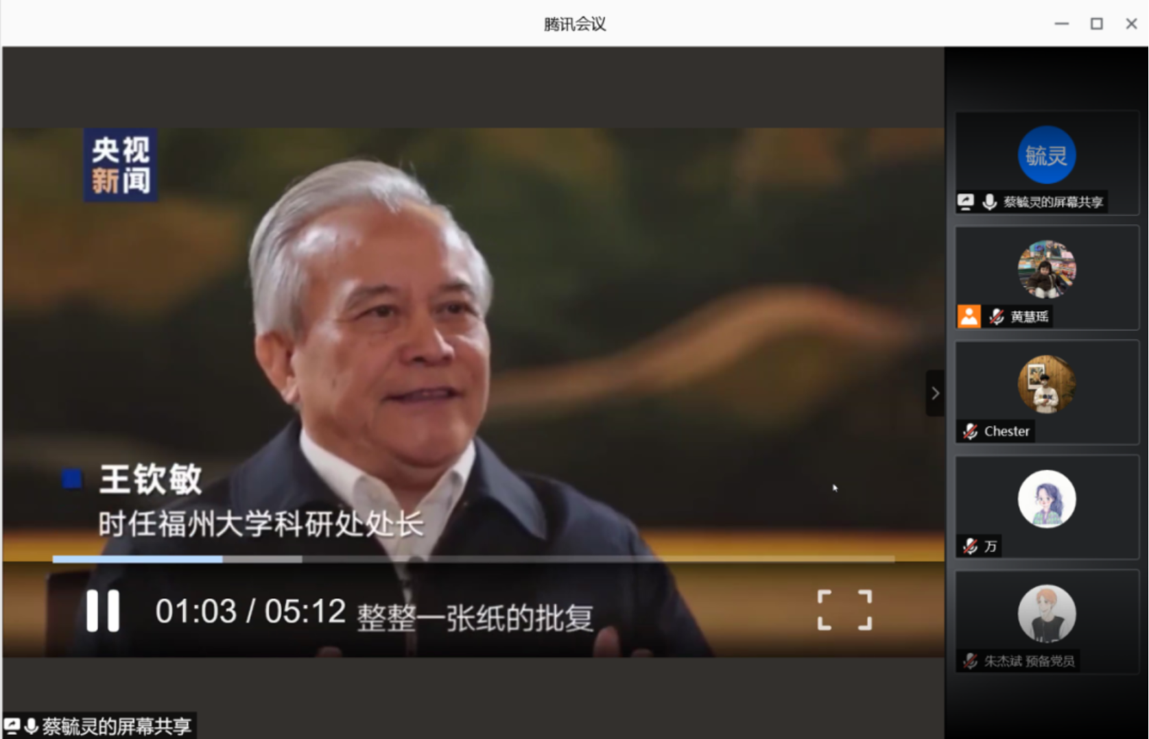 会议第二项,由蔡毓灵同志线上带领大家积极讨论此次活动主题,并一同观看《20年从数字福建到数字中国》的短视频。看完后每个人联系数字社会对中国发展带来的作用以及给人民生活带来的便利,各位同志结合自身和视频内容,发表自己的体会,并由蔡毓灵同志作最后总结。