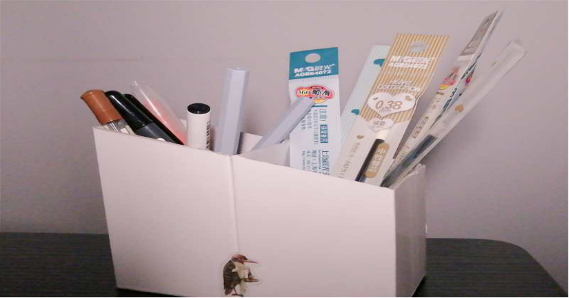 吴纯瑛:平时买东西,例如保温杯,所附带的长方形盒子,可以通过裁剪一次,成为一个小小的笔筒,简单又实用。