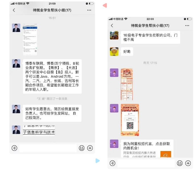 坚持“不忘初心 牢记育人使命”,今年在新冠肺炎的冲击,毕业生的就业受到了影响,为了使毕业生尽快去到相应工作岗位上,组织对应专业教师进行点对点帮扶指导,为未就业毕业生提供思想指导和经验分享。