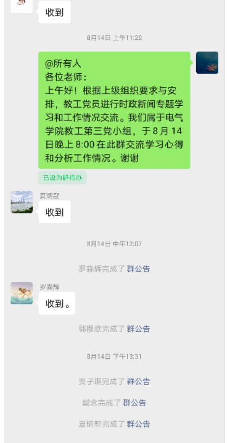 2020年8月14日20:00,电气学院教工党支部第三党小组在微信上开展了党小组会议。本次会议由原伟同志主持,电气学院支部教工党支部第三党小组全体党员参加了本次会议。