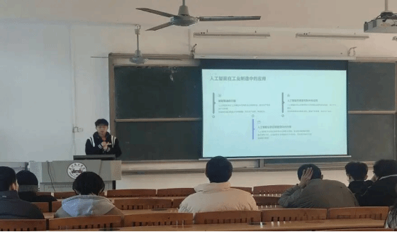 02其次,周志鹏同志讲述了有关AI的机器学习与深度学习,以智能制造的兴起、人工智能在质量控制中的应用与人工智能在供应链管理中的作用让同学们进一步了解了AI的发展现状:AI发展迅速,已广泛应用于生活各领域,如医疗、金融、交通等,提高了社会运行效率。