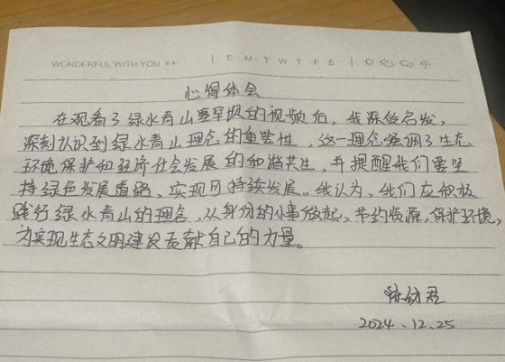 观看了讲述塞罕坝林场发展历程与精神传承的专题视频。视频中,一幅幅震撼人心的画面、一个个感人至深的故事,生动展现了塞罕坝几代人五十多年来在极其恶劣的自然条件下,战风沙、斗严寒、抗干旱,植树造林,将茫茫荒原变成万顷林海的艰苦创业历程。从最初的一棵松到如今的百万亩林海,塞罕坝人用青春、汗水甚至生命,诠释了对绿色梦想的执着追求和对生态文明建设的不懈努力。