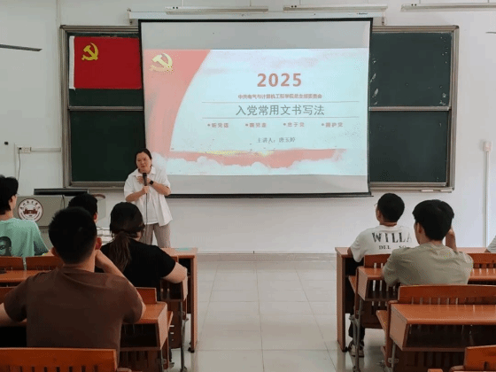 为了帮助发展对象深入了解入党的各个环节,掌握常用文书的写作技巧。2025年10月11日,电气学院党总支分党校于3教201开展2025年秋季发展对象培训第一讲——《入党常用文书写作》,本次党课由唐玉婷老师主讲。