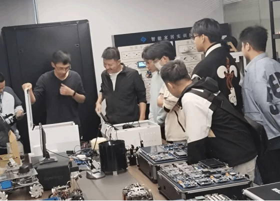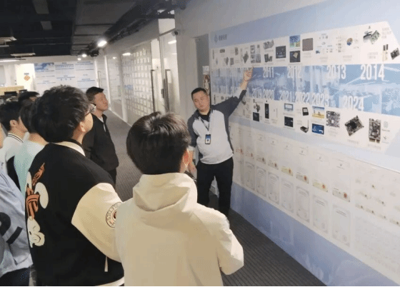 在走访实践教学基地中,粤嵌一线工程师引导师生一行,系统参观了嵌入式项目研发工作区,近距离观察了从项目立项、原型开发到测试部署的全流程工作场景。随后,粤嵌技术团队结合当前物联网、智能终端等领域的行业前沿动态,围绕嵌入式开发、人工智能开发及系统开发三大核心研究方向,从技术应用场景、核心技术栈到岗位能力需求等方面进行了详细介绍,不仅深化了师生对前沿技术的认知,更为同学们清晰勾勒出从基础学习到职业进阶的技术发展路线图。