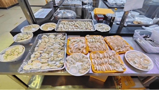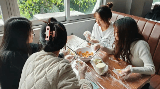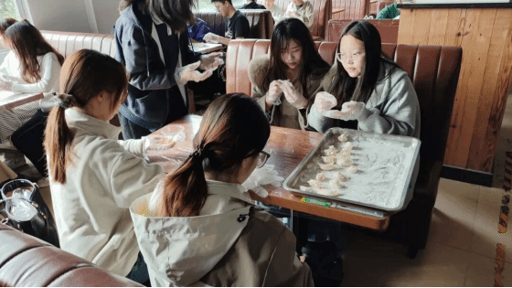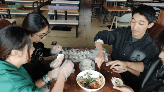 活动伊始,活动组成员提前布置好场地,采购了新鲜的饺子皮、玉米猪肉馅、韭菜鸡蛋馅、韭菜香菇馅以及各类新鲜调味食材,为活动的顺利开展做足充分准备。下午2点,参与人员准时集结,大家分组围坐一桌,动手包饺子,现场氛围热烈而温馨。