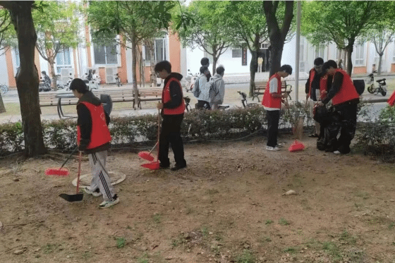 响应号召参与爱国卫生运动、校园环境卫生整治,清理卫生死角、整治周边环境,用汗水换环境焕新;