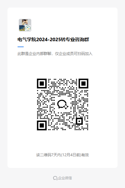 如需了解电气学院各专业更多相关情况,请移步电气学院2-104B教务办公室咨询,并通过企业微信或微信扫码加入以下咨询群: