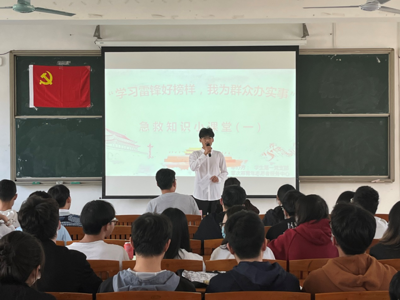 课堂的主讲人:学生第一党支部党员洪明鹏同志(北京冬奥会张家口赛区应急救护志愿者、美国心脏协会AHA国际救护员)。