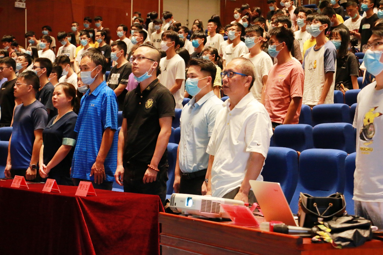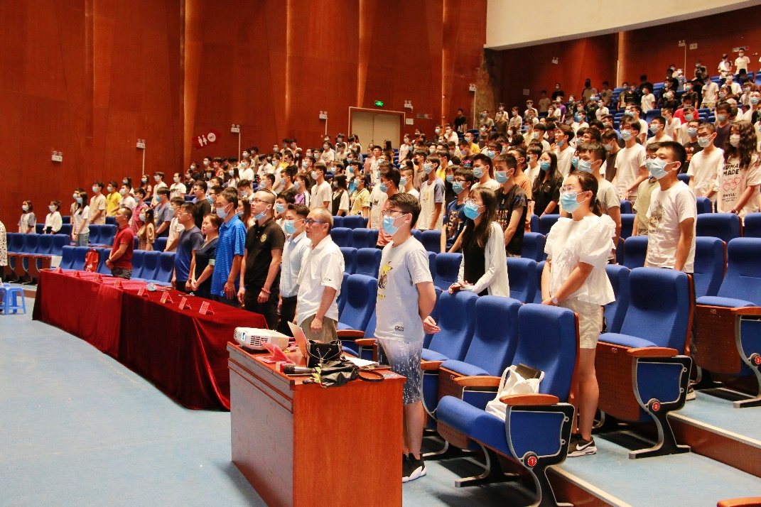 大会第一项,全体起立奏唱国歌。