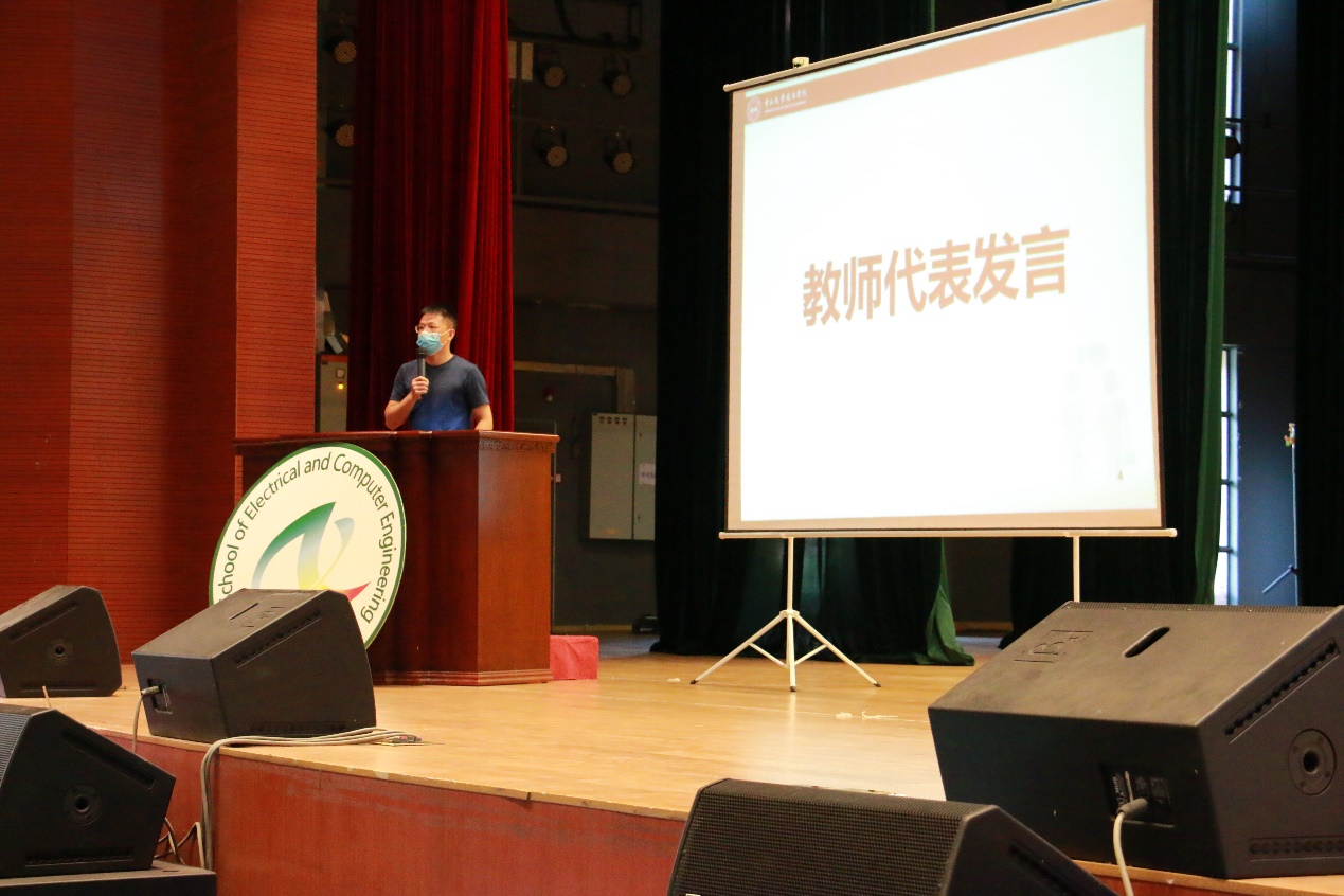 大会第三项,教师代表发言。张鉴新老师为大家分享了实习心态和面试的心得,首先张鉴新老师希望同学们都能清楚自身位置,不应好高骛远,也不应看低自己,在实习单位中积累专业经验,丰富自己。再者希望同学们抓住时机去投放自己的简历。在面试中,张鉴新老师提醒同学们在面试中遇到面试官提出的问题要如实回答,还可以向面试官分享自己对此行业的想法和看法。张鉴新老师希望同学们要有良好的心态,寻找工作要坚持,不应气馁。最后,张鉴新老师送给同学四个字:加油少年。