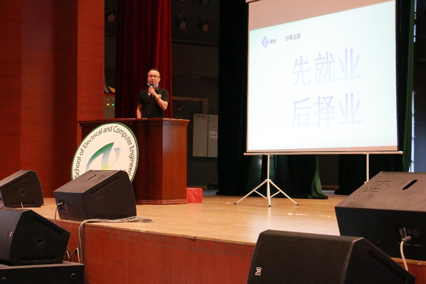大会第四项,企业代表发言。粤嵌公司粟小飞总监发言主题是先就业再择业,粟小飞总监强调此次疫情对企业产生不利的影响,也对应届毕业生就业产生不利影响,粟小飞总监希望应届生毕业生寻找工作时不要持观望状态,拒绝拖延症。