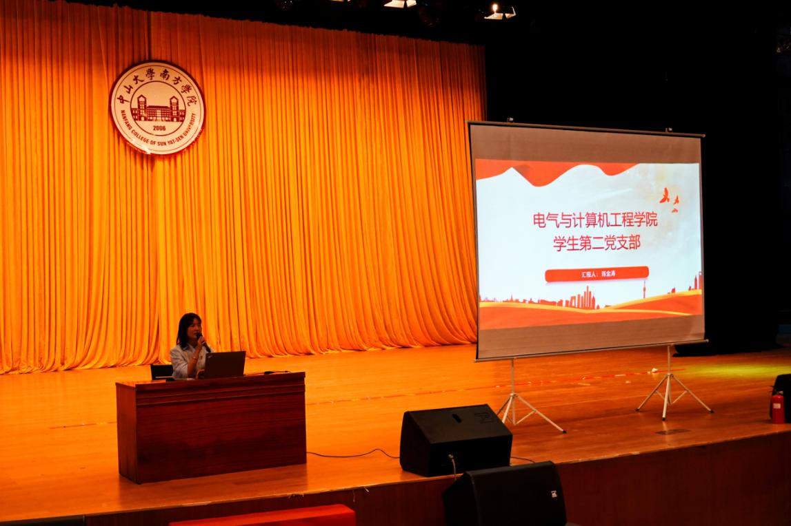 最后一支上台做介绍的队伍是--学生第一党支部,支部书记曲楠楠老师主要就以下两方面展开介绍。在支部建设方面,学生第一党支部积极响应完善“三会一课”制度在支部中的建设,注重支部品牌化建设,同时也会按时上好党课;在学习方面,党员同志都在严格要求自己,许多党员同志拿到了校级甚至国家级奖学金。并且开展常用办公软件的品牌活动,为同学们熟练掌握办公软件打下基础。