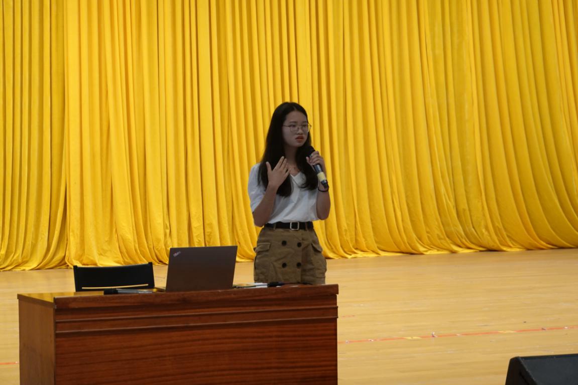 第二支上台做介绍的队伍是--学生第三党支部。苏燕璇同志作为支部宣传委员代表三支部向大家展开介绍:学生第三党支部的党员构成、支部风采和特色:三支部立志打造爱学习,讲奉献,会创新的团队,发挥学生党员先锋模范作用。其次,她还介绍了本支部的品牌活动“高数分享课”,旨在培养学生数学能力。除此之外,“节约粮食”的团日活动,民法典集体学习,“青春告白祖国”等品牌活动也得到了学院同学们的不错反响。