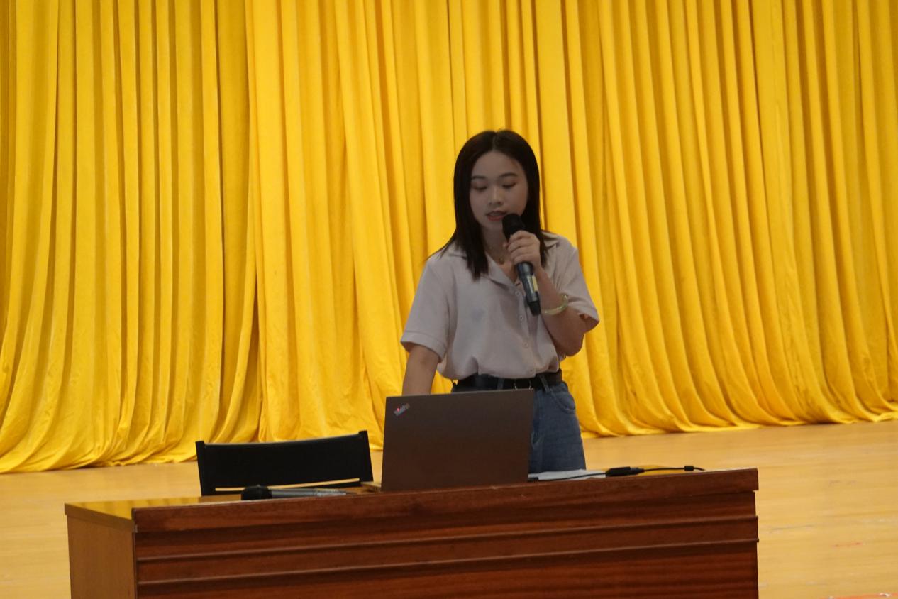我院学生第三党支部的王靖愉同志和陈伟燊同志一同介绍了关于“讲奉献”的主题。王靖愉同志运用其支教的经历,充分诠释了“赠人玫瑰手留余香”这句话。同时,她还分享了本支部其他党员同志在志愿活动中的精彩剪影。