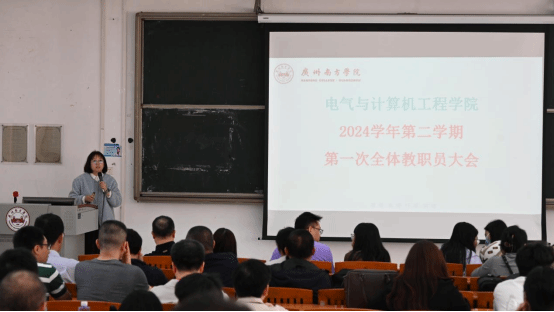 2025年3月12日中午1时,电气学院于第二教学楼106教室成功召开了2024-2025学年第一学期首次全体教师大会。此次会议旨在部署新学期重点工作,进一步明确学院各项任务与目标。科研处处长严五胤、电气学院领导及全体教职工参加会议。