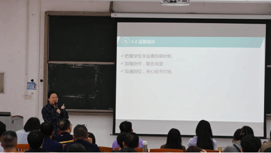 接着,学工办主任唐玉婷老师介绍了2025届毕业生就业工作进展时间节点及各项工作任务,分享了指导学生就业的经验。她号召全院老师凝心聚力,共同做好今年的毕业生就业工作,为学生的未来发展贡献力量。